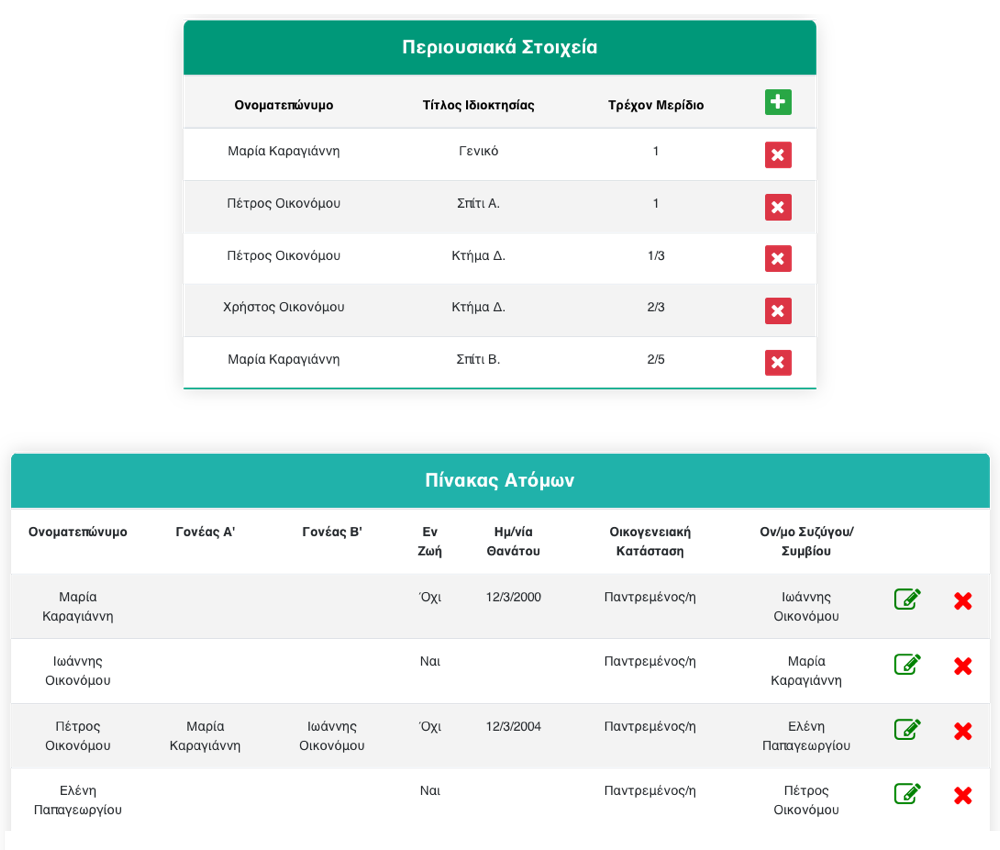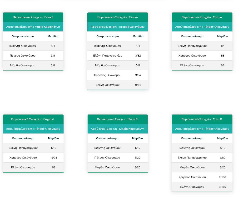 Για γρήγορη και εύκολη επίλυση της εξ αδιαθέτου κληρονομικής διαδοχής, χωρίς πράξεις. Συμπληρώστε μια απλή φόρμα και τα περιουσιακά στοιχεία, και πάρτε αμέσως τα αποτελέσματα.